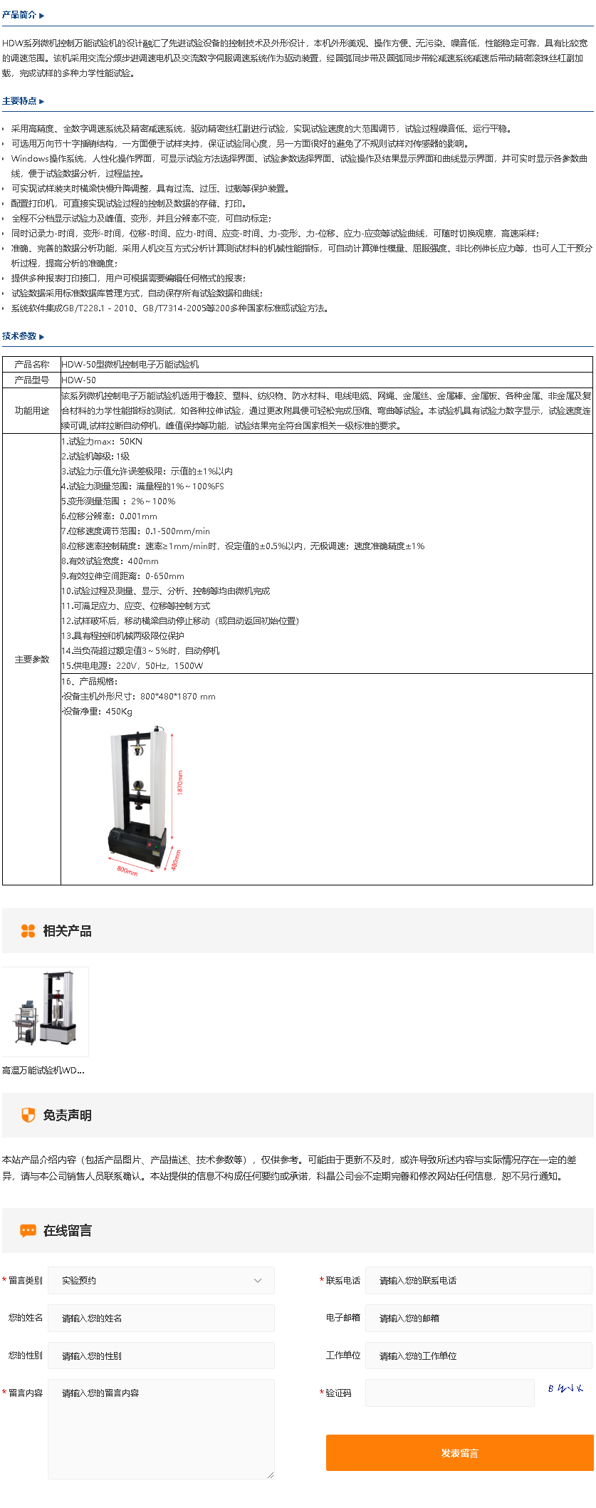 HDW-50型微机控制电子万能试验机