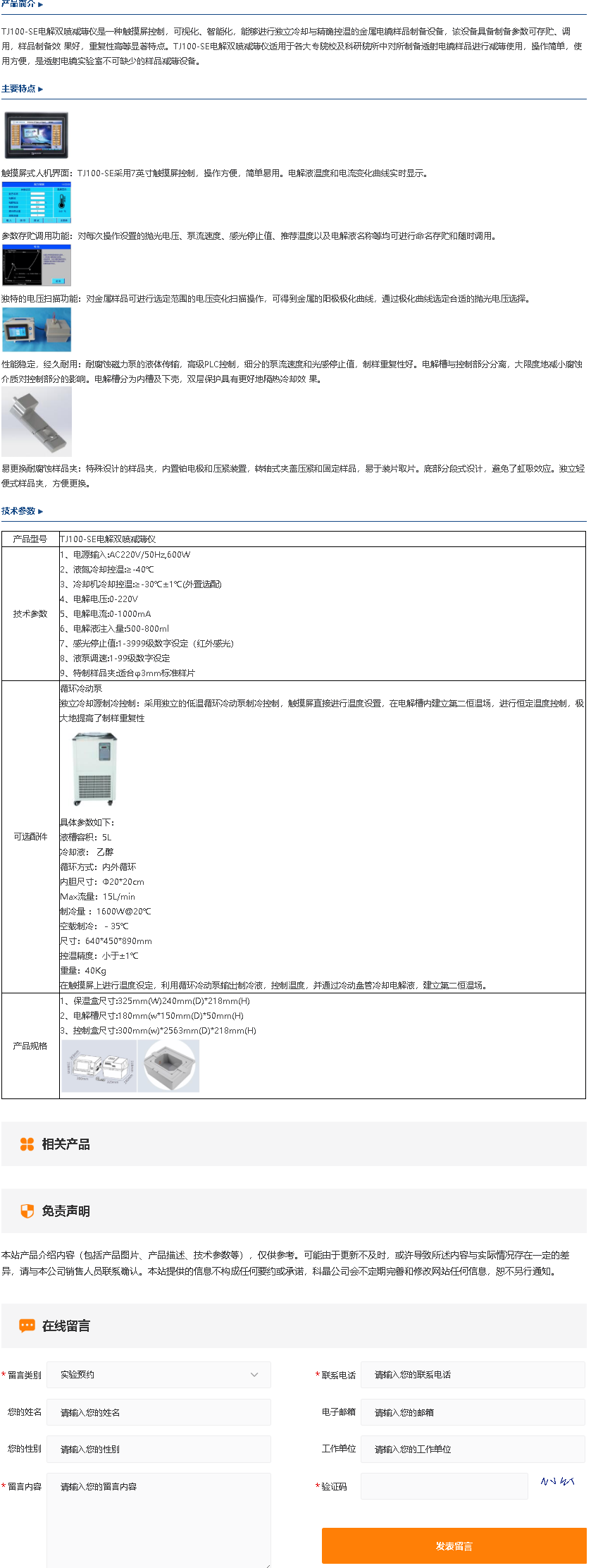TJ100-BE电解双喷减薄仪