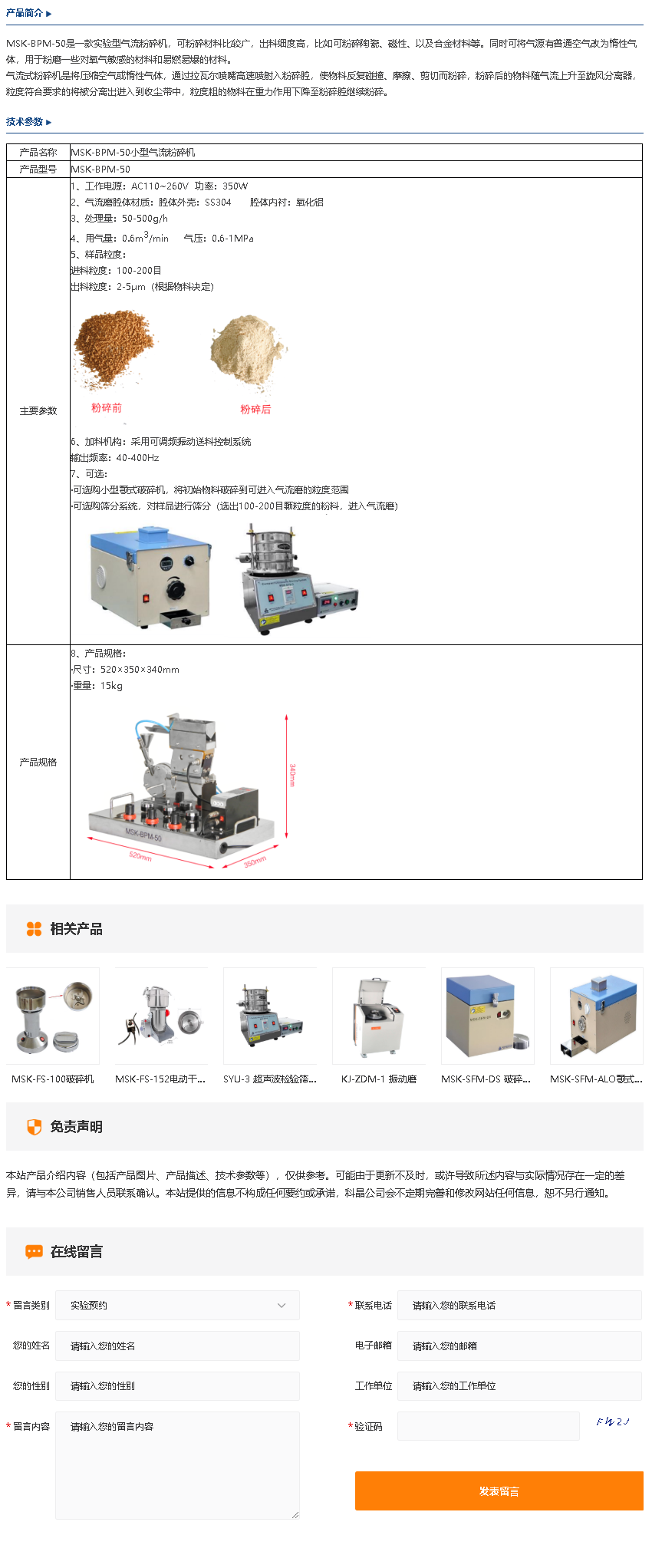 MSK-BPM-50 小型气流粉碎机