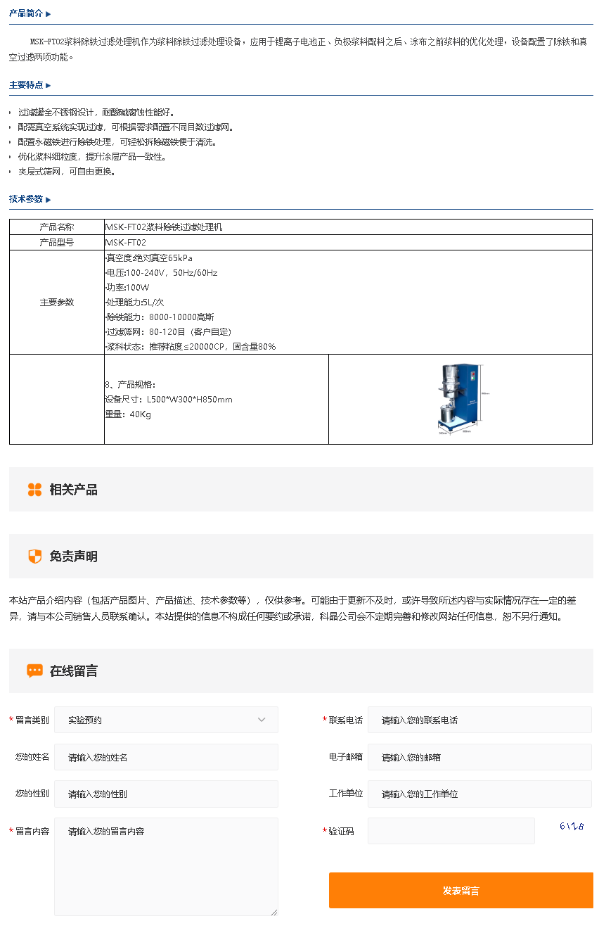 MSK-FT02浆料除铁过滤处理机