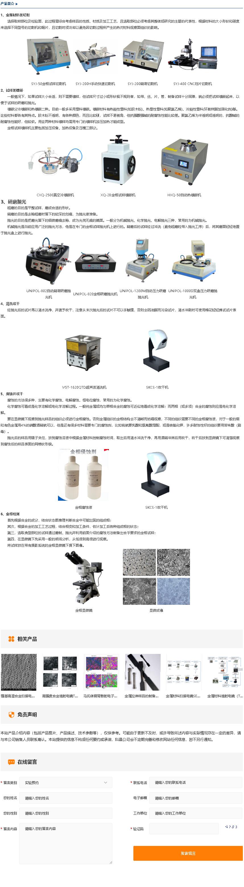 金属材料扫描电镜SEM制样设备